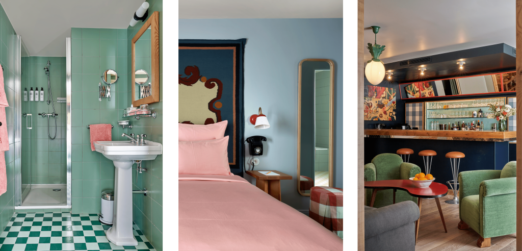 Sous l’influence britannique, l’hôtel de la Boétie arbore une décoration résolument vintage, imprégnée d’élégance et de couleurs vibrantes, créant ainsi une atmosphère chaleureuse et accueillante.